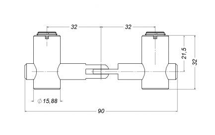 Furo de montagem em relação ao centro do ângulo 32mm no centro da ranhura;