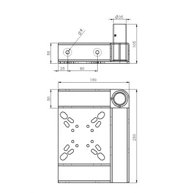Base reforçada tubo quadrado esquerda (preto RAL 8020)