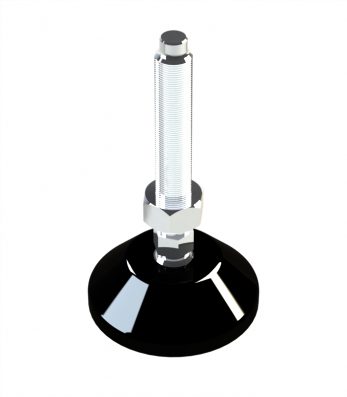 Pé nivelador com base em poliamida e haste de aço;